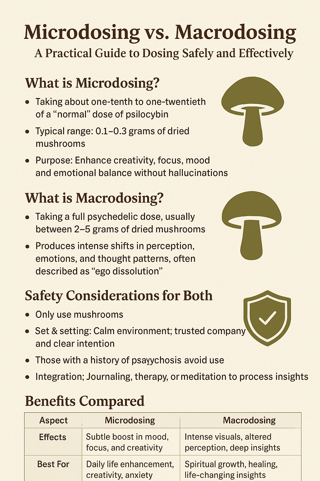 Magic mushrooms have fascinated humans for centuries—used by ancient cultures for spiritual ceremonies and, more recently, by modern seekers for healing, creativity, and self-discovery. Today, two very different approaches dominate the conversation: microdosing and macrodosing.